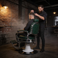 Kapperstoel met wasbak zwartDeze stoel combineert functionaliteit, comfort en subtiele eleganti...