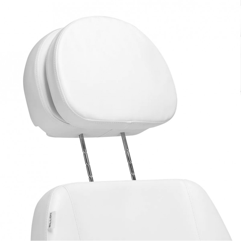 De ergonomisch gevormde fauteuil zorgt voor een comfortabele lichaamshouding tijdens de behandelingen en de brede zitting garandeert optimaal comfort. De mogelijkheid om de fauteuil tot een ligpositie te verstellen en een verborgen opening in de hoofdsteun onder het kussen maken hem ideaal voor gezichts- en rugbehandelingen, evenals massages . Verstelbare armleuningen, die 180 graden draaibaar zijn , zorgen voor comfortabel zitten en een goede toegang voor de cliënt. Ze kunnen indien nodig snel en eenvoudig worden verwijderdLuxe elektrische schoonheidsstoel 3 motoren wit voetbediening