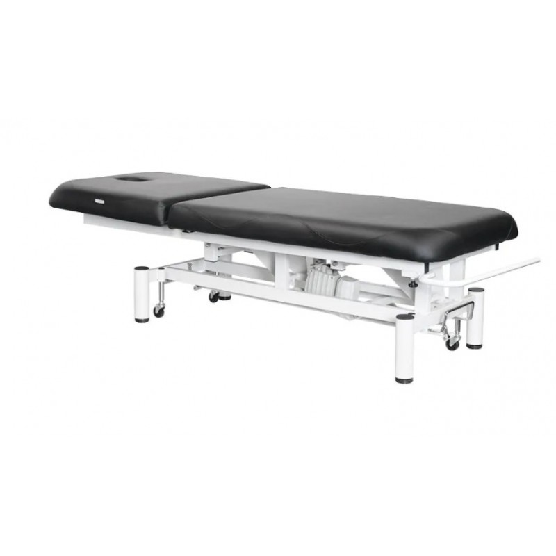 Hoogwaardige bank, speciaal voor fysiotherapiebehandelingen. Uitgerust met 1 motor, de hoogte is elektrisch verstelbaar, de rugleuning en de helling zijn handmatig verstelbaar. De hoofdsteun is een kussen met ventilatieopening.