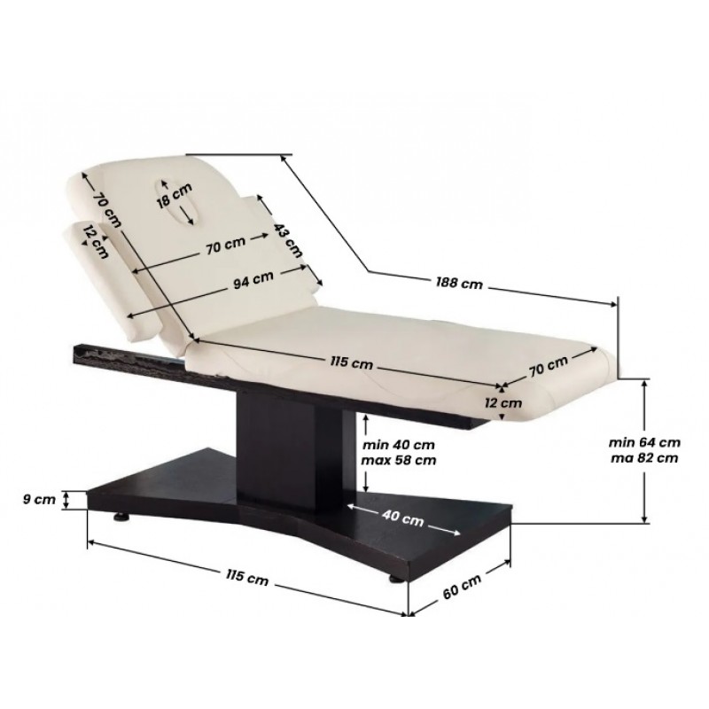 Het cosmeticabed is een hoogwaardige bank waarmee u cosmetische behandelingen en alle soorten massages kunt uitvoeren. De elektrisch verstelbare hoogte en de rugleuning van het bed kunnen eenvoudig worden versteld om het bed in de gewenste stand te zetten, wat comfort garandeert voor zowel de cliënt als de persoon die de behandeling uitvoert. Functionaliteit en moderniteit garanderen een brede inzetbaarheid.