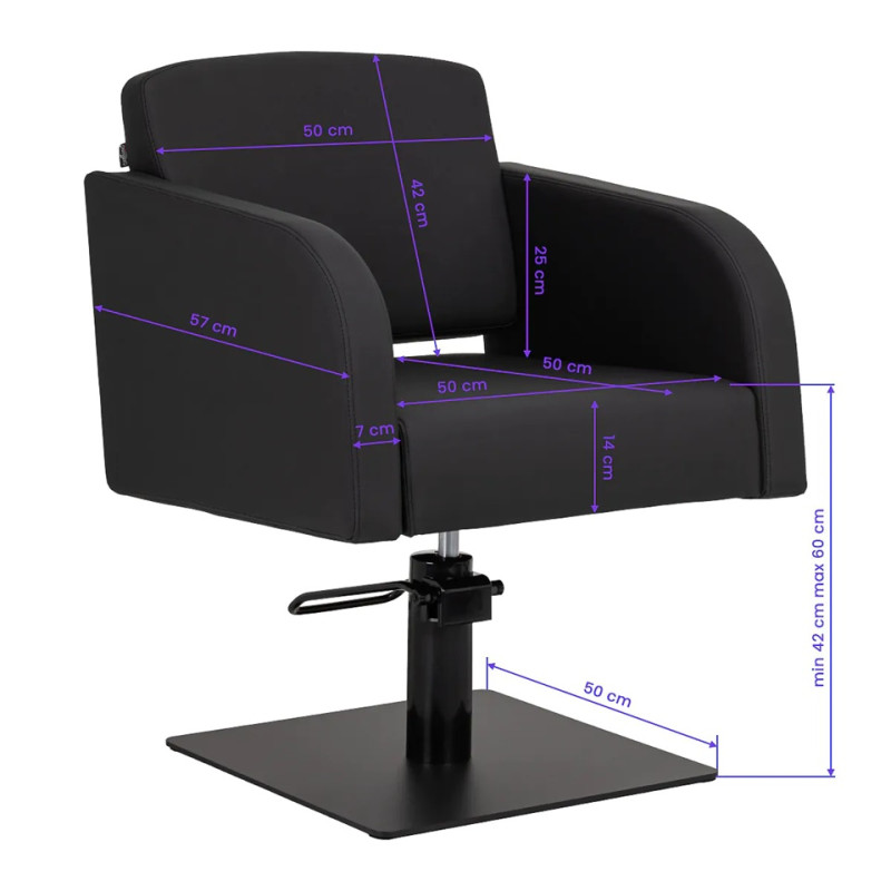 De duurzame hydraulische lift zorgt voor een soepele zithoogteverstelling van 42 tot 60 cm , zelfs wanneer de klant in de stoel zit. Dit maakt ergonomisch werken mogelijk en de positie kan eenvoudig worden aangepast aan de lengte van zowel de klant als de kapper. De comfortabele rugleuning zorgt voor een comfortabele houding en biedt stabiele ondersteuning , wat vooral belangrijk is tijdens lange behandelingen, en verhoogt tegelijkertijd het comfort en de tevredenheid van de klant .