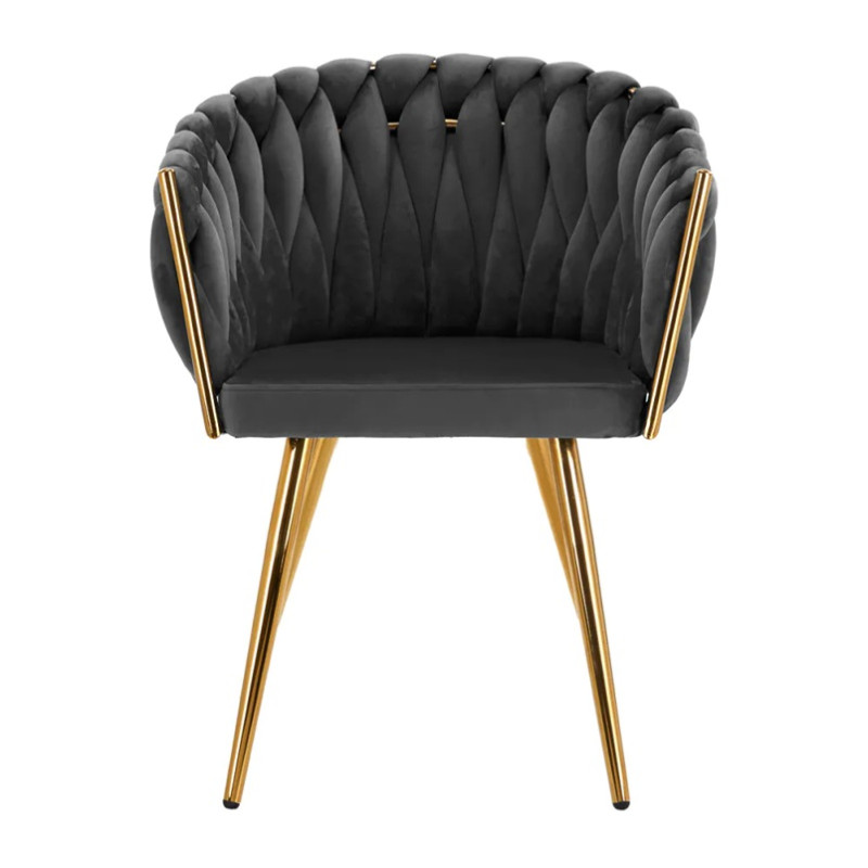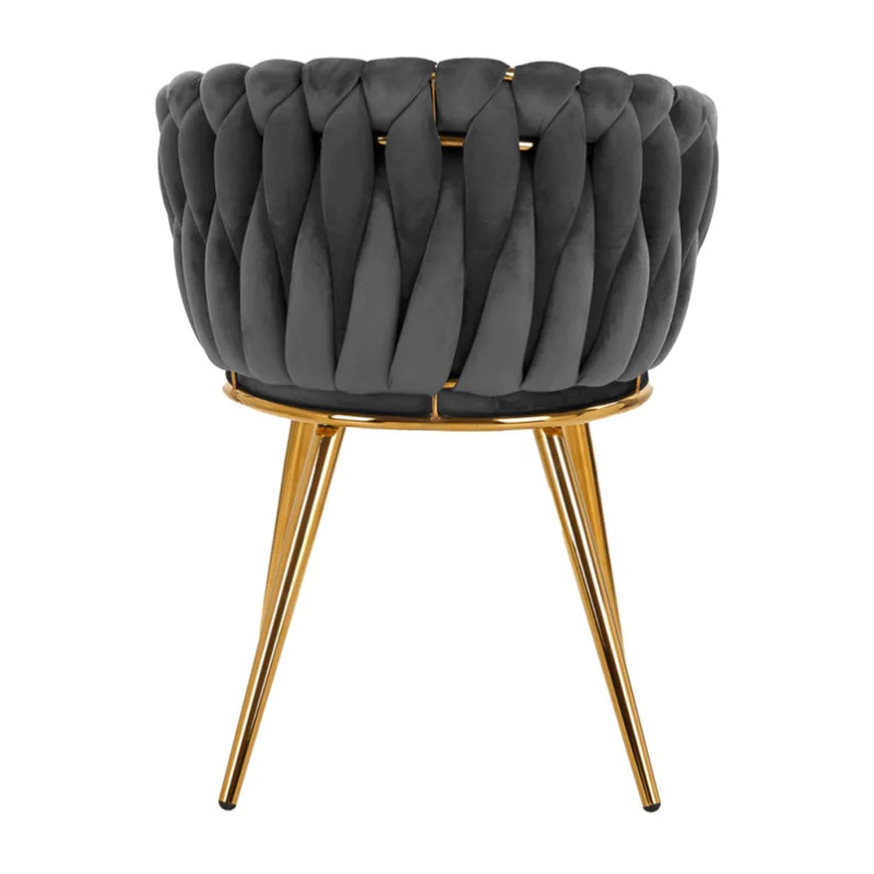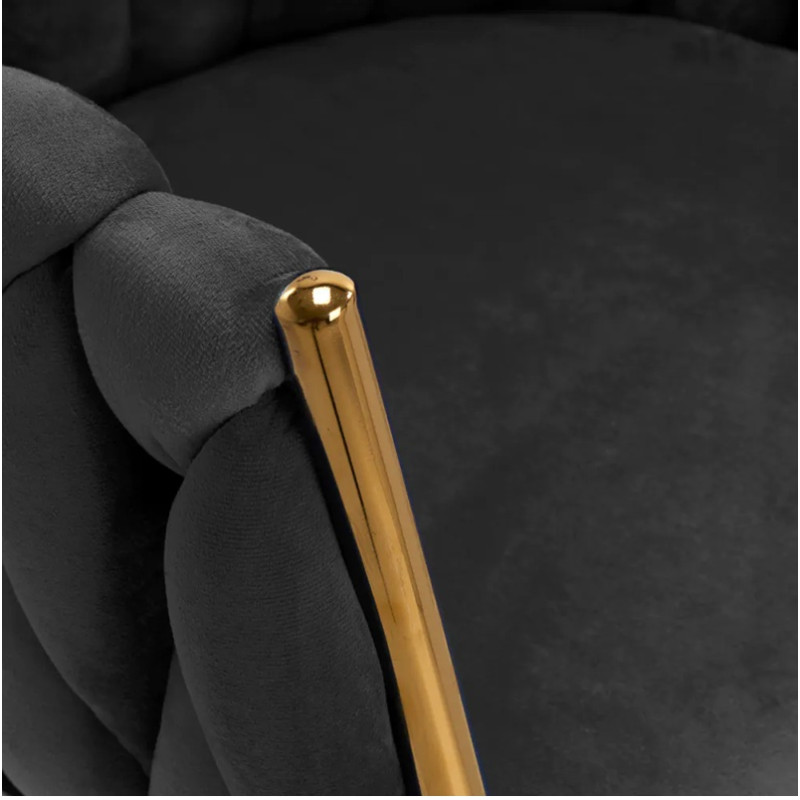 Een stabiele, ronde voet in zwarttinten voegt elegantie toe en past perfect bij het fluweel.