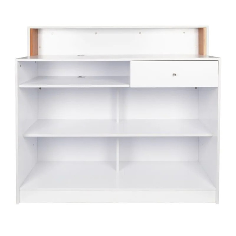 De stijlvolle receptiebalie is een perfect visitekaartje voor een professionele salon, of het nu gaat om een ​​kappers- of schoonheidssalon.