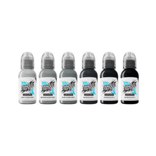 De Shades of Grey-set van World Famous Limitless is ideaal voor het maken van zwarte en grijze tatoeages met warme ondertonen. Ze voldoen volledig aan de nieuwste EU REACH-regelgeving die in januari 2023 van kracht werd.