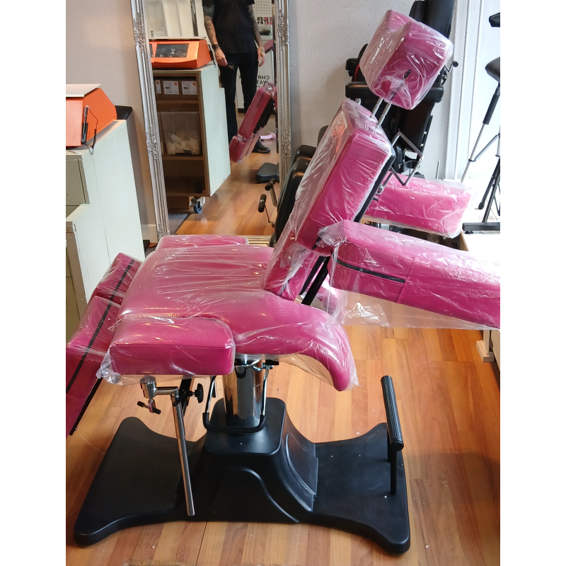 De Deluxe Tattoo Behandelstoel is ontworpen met het oog op ultiem comfort. Het is als een troon waarop de klant plaatsneemt, omringd door zachte, gewatteerde bekleding die zich naar het lichaam vormt. De stoel is uitgerust met een verstelbare rugleuning, beensteun en armleuningen, zodat de klant in elke gewenste positie kan ontspannen. Of het nu gaat om een korte tatoeagesessie of een uitgebreide kunstwerk, de klant zal zich volledig op zijn gemak voelen.