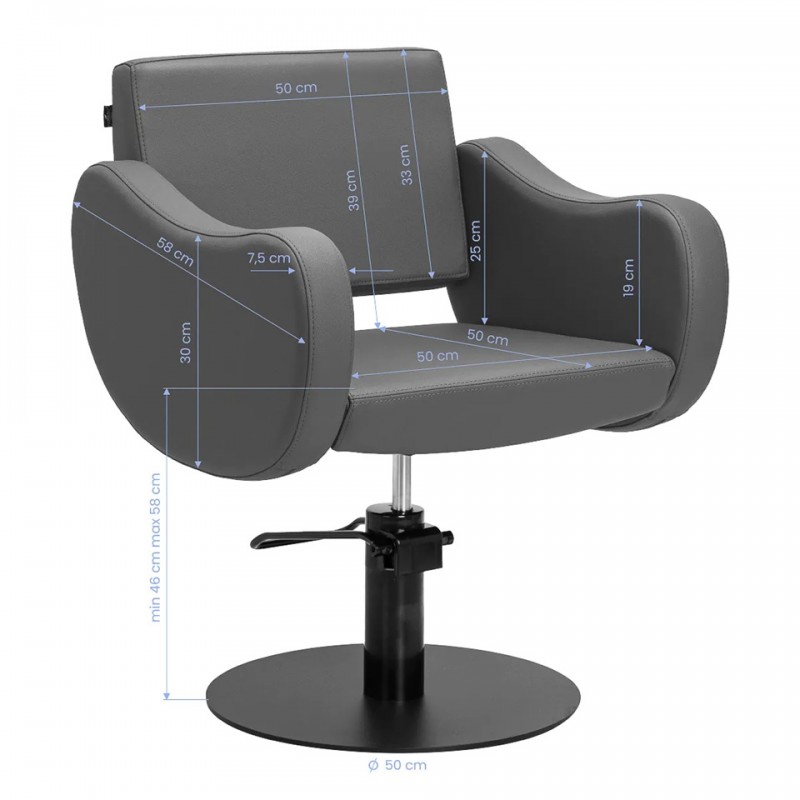 Deze kappersstoel combineert functionaliteit met tijdloze esthetiek. Een duurzame hydraulische lift zorgt voor een soepele hoogteverstelling , waardoor de positie eenvoudig aan de behoeften van de kapper kan worden aangepast. De ergonomische zitting, comfortabele rugleuning en prachtig gevormde armleuningen garanderen comfort, zelfs tijdens langere behandelingen. Het moderne, minimalistische design zorgt ervoor dat de stoel harmonieus past bij zowel klassieke als moderne saloninrichtingen.