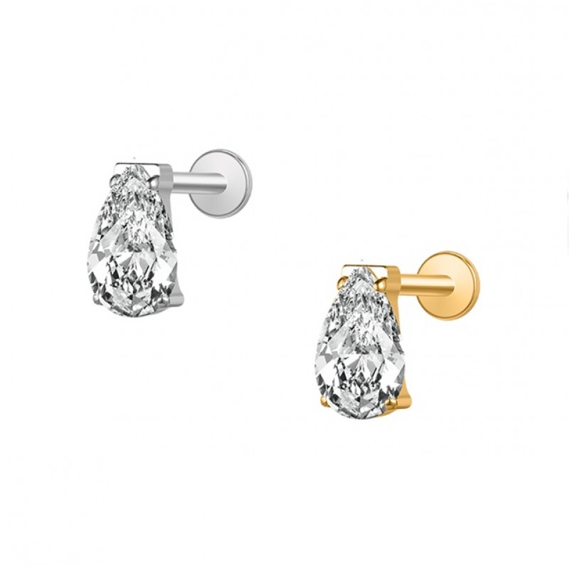 1.2 x 8 mm pusch pin labret met peervormige steen