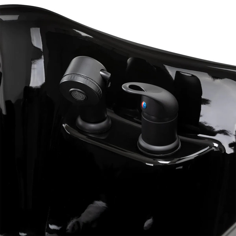 De wasstraat is uitgerust met een mengkraan die gemakkelijk toegang biedt tot warm en koud water, waardoor de temperatuur nauwkeurig kan worden aangepast aan de individuele voorkeuren van de klant . Een praktische ophangplek voor de handset vergemakkelijkt het werk, terwijl een aftapplug met een speciaal zeefje u de waterstroom laat regelen en hoge hygiënenormen in de salon handhaaft. De wateraansluiting bevindt zich in de voet , waardoor de installatie discreet verborgen blijft en bijdraagt aan de esthetiek en netheid van de werkplek. Het ergonomische ontwerp van de wasstraat garandeert comfort tijdens verschillende behandelingen , en de doordachte combinatie van functionaliteit en detail maakt het dagelijkse werk in de salon nog comfortabeler .