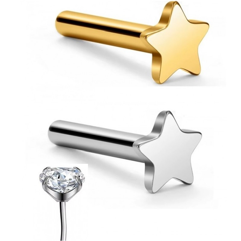 Star Base Titanium Push pin Labret met klauwzetting steen