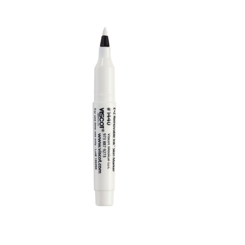 Viscot Medical 1440 EZ verwijderbare marker in witte inkt is perfect voor tatoeage-ontwerpen uit de vrije hand, aanpassingen aan stencils en voortekens voor permanente make-up. Het is een marker in miniformaat om het tatoeage- of permanente makeup-markeringsproces eenvoudiger te maken!